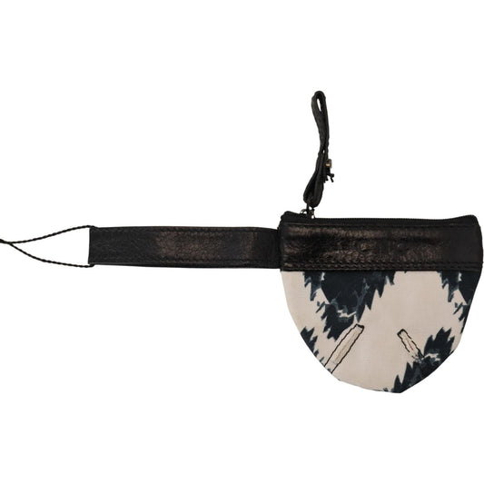 محفظة نقود معدنية أنيقة باللون الأبيض من الجلد الوطني مع حزام