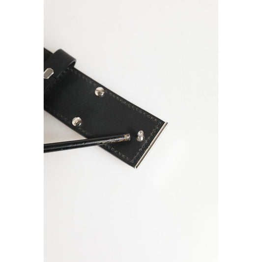 Dolce & Gabbana Black Leather Silver Metal Logo Buckle Belt