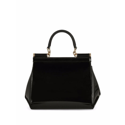 حقيبة دولتشي آند غابانا من جلد العجل الأسود المصقول بلمسة نهائية ذهبية اللون مع لوحة شعار