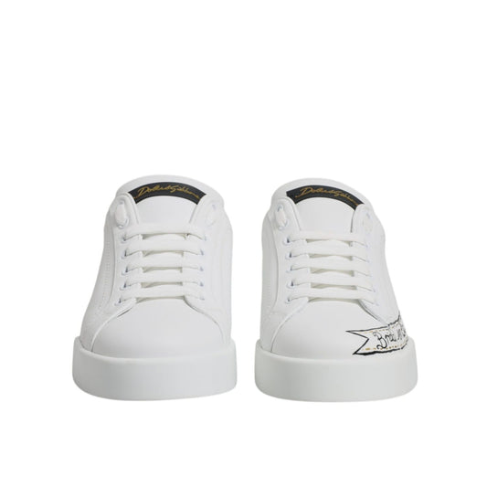Dolce & Gabbana White Blue Portofino Leather Sneakers Shoes
