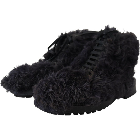 حذاء الكاحل من الجلد الأسود من دولتشي آند غابانا