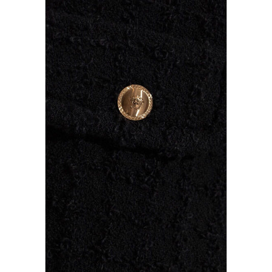 سترة فيرساتشي أنيقة باللون الأسود مع شريط شعار وغطاء رأس قابل للفصل