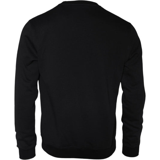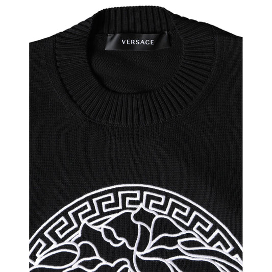 سويت شيرت فيرساتشي أسود من الصوف القطني بياقة دائرية وطبعة ميدوسا