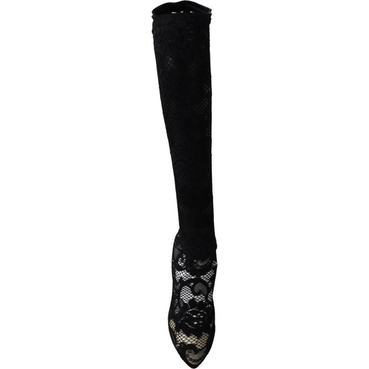 حذاء دولتشي آند غابانا أسود بكعب ستيليتو يصل إلى منتصف الساق