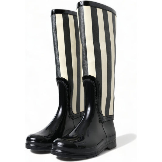 حذاء طويل حتى الركبة مخطط باللونين الأبيض والأسود من دولتشي آند غابانا