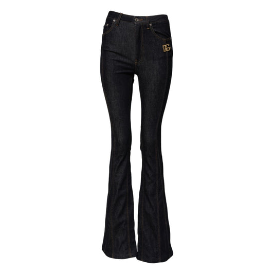 Dolce & Gabbana Black Cotton Mid Waist Flared Denim Jeans
