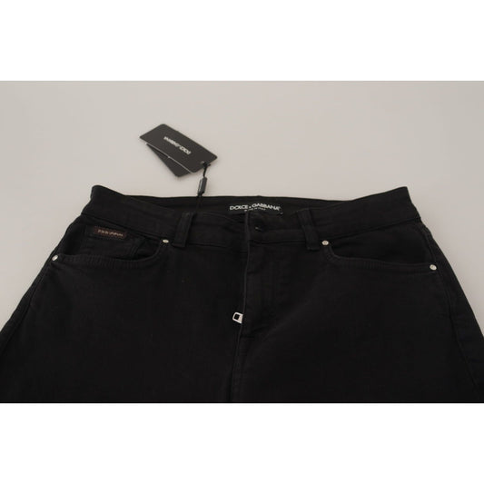 بنطلون جينز ضيق من القطن باللون الأسود الأنيق من دولتشي آند غابانا