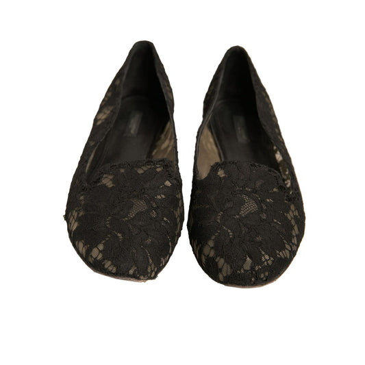 Dolce & Gabbana Black Taormina Lace Slip On Flats Shoes