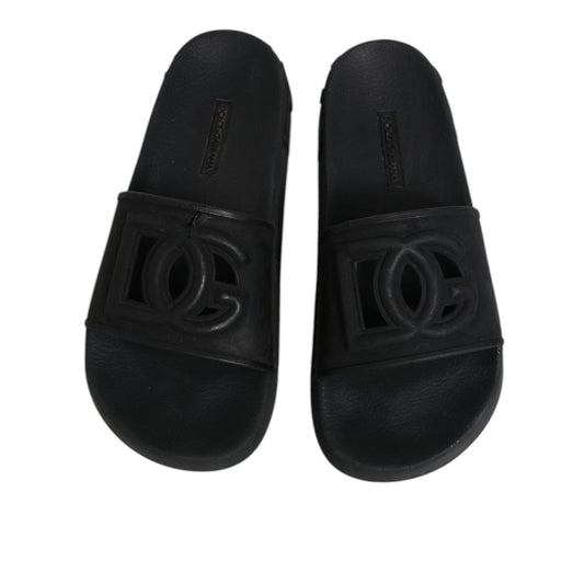 Dolce & Gabbana Black Rubber Slides Sandals Beachwear Shoes