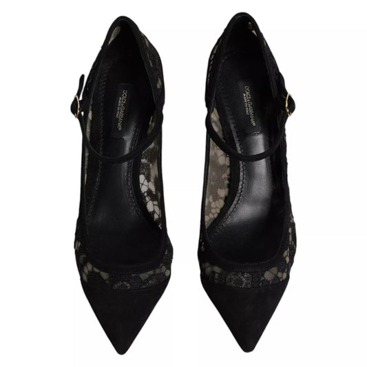 Dolce & Gabbana Black Mary Jane Taormina Lace Pumps Shoes