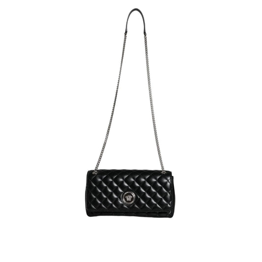 حقيبة كتف من فيرساتشي مصنوعة من جلد الحمل المبطن باللون الأسود