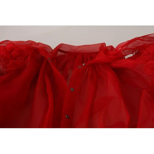 بلوزة دولتشي آند غابانا من الحرير الأحمر مع كشكشة وياقة أسكوت