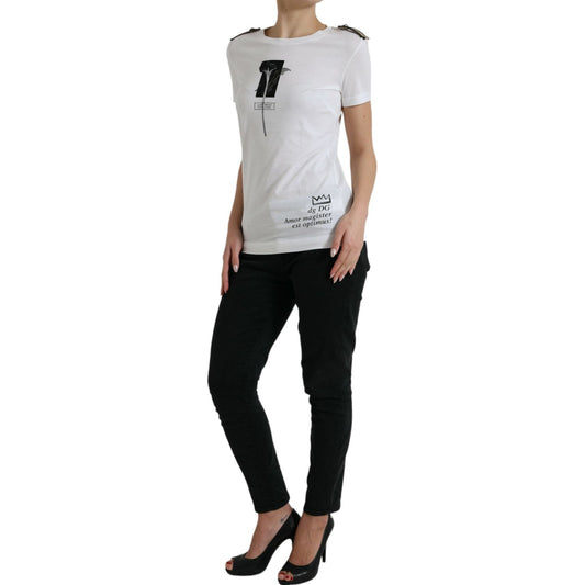 تي شيرت دولتشي آند غابانا الأنيق المصنوع من القطن باللون الأبيض بياقة دائرية