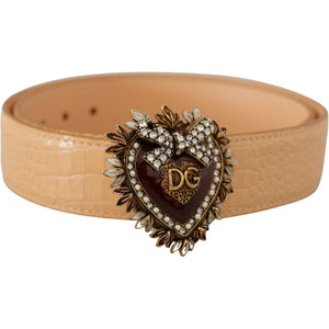 Dolce & Gabbana Beige Croc Pattern DEVOTION Heart DG Waist Buckle Belt
