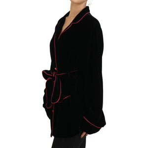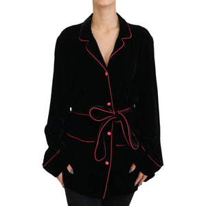 سترة أنيقة من مزيج الحرير باللون الأسود مع حزام للخصر من دولتشي آند غابانا