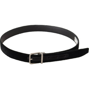 Dolce & Gabbana Black Casual Velvet Silver Metal Logo Buckle Belt