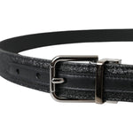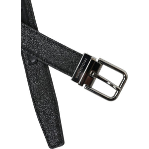 حزام دولتشي آند غابانا المصنوع من الجلد الأسود اللامع مع مشبك فضي