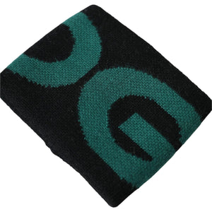 سوار رائع جديد تمامًا مع العلامات التجارية، أصلي 100% من دولتشي آند غابانا باللونين الأسود والأخضر. مصنوع من الصوف. مزين بنمط شعار مطرز.