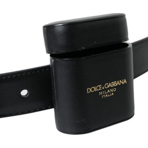 حافظة سماعات Airpods من الجلد الأسود مع حزام بإبزيم فضي من Dolce & Gabbana