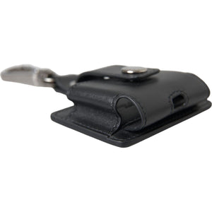 حافظة سماعات Airpods من دولتشي آند غابانا مصنوعة من الجلد الأسود العادي باللون الفضي