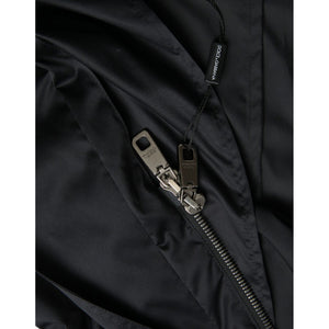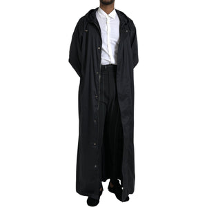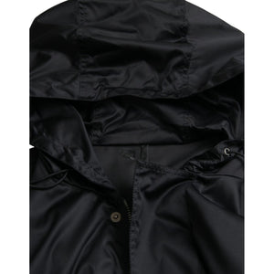 سترة طويلة من البوليستر بغطاء رأس أسود من دولتشي آند غابانا مقاومة للرياح