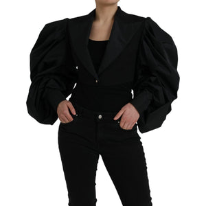 جاكيت قصير بأكمام منفوخة من البوليستر باللون الأسود من دولتشي آند غابانا
