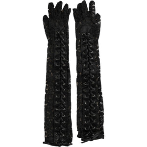 قفازات دولتشي آند غابانا تاورمينا الدانتيل السوداء بطول الكوع