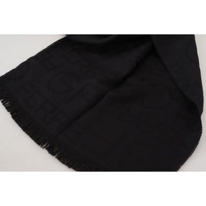 GF Ferre Black Wool Neck Wrap Shawl Fringes Scarf