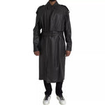 Bottega Veneta Black Leather Men Waterproof Trenchcoat Jacket