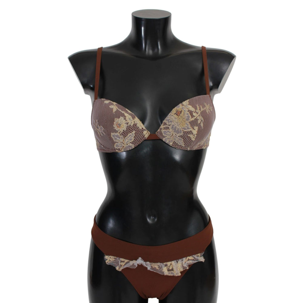 PINK MEMORIES بدلة سباحة أنيقة من قطعتين مصنوعة من الدانتيل باللون البني