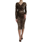 فستان دولتشي آند غابانا متوسط الطول بقصة ضيقة وفتحة رقبة على شكل حرف V وطبعة جلد النمر باللون البني