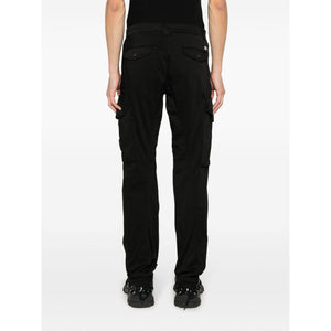 black stretch-cotton belt loops at the waist two press-stud fastening side pockets two side cargo pockets appliqué logo to the side two rear flap pockets mini rear logo tag internal logo tag tapered leg straight hem front button and zip fastening C.P. Company suggests removing any detachable accessories before washing. Cotton cargo trousers Size and Fit - This piece fits true to size. We recommend you get your regular size. Model is 1,84m / 6ft 1in wearing size 48 (IT)
