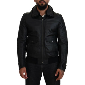 سترة دولتشي آند غابانا أنيقة من الجلد الأسود المبطن بالحرير