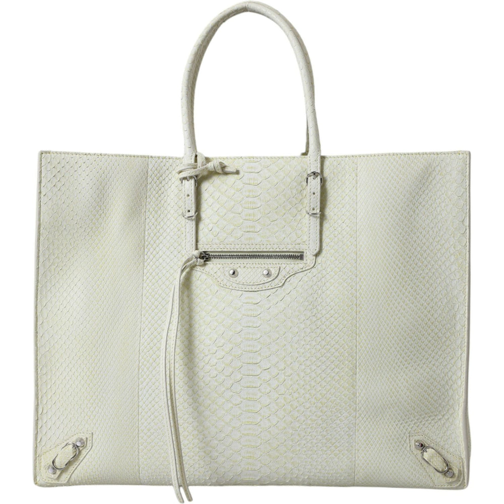 حقيبة Balenciaga Chic المصنوعة من جلد الثعبان باللونين الأبيض والأصفر