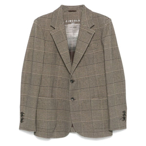 light brown/black cotton blend fleece texture Prince of Wales check pattern front button fastening notched lapels long sleeves faux-buttoned cuffs chest welt pocket dart detailing two front patch pockets English rear vents internal jetted pocket partial lining curved hem Cotton single-breasted jacket Size and Fit - This piece fits true to size. We recommend you get your regular size. Model is 1,84m / 6ft 1in wearing size 48 (IT)
