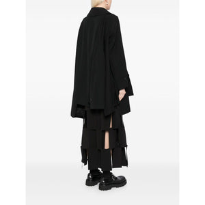 black wool double-breasted button fastening side slash pocket asymmetric sleeves Ulster lapels asymmetric hem Wool double-breasted coat