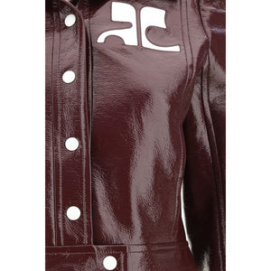 Courrèges’ Cotton Jacket combines boldness and contemporary style in a cropped model with a leather-effect design. Featuring a high collar and front snap-button closure, it has two side welt pockets for discreet functionality. The iconic logo on the front adds a distinctive and refined touch. Perfect for those looking for a jacket with a bold, modern character.