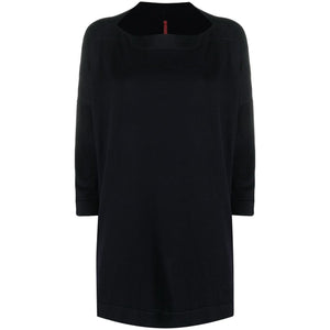 navy cotton knitted construction ribbed detailing tonal stitching boat neck three-quarter length sleeves flared design Cotton boat-neck sweater Size and Fit - This piece fits true to size. We recommend you get your regular size. Model is 1,75m / 5ft 8in wearing size UNI