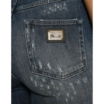 اخرج بأناقة مع هذا الجينز الرائع من Dolce & Gabbana ذو الخصر العالي والمطاط. هذا الزوج عبارة عن مزيج سلس من الفخامة والراحة، مصنوع من مزيج عالي الجودة من القطن والإيلاستين لملاءمة مريحة ومرنة. يضيف الخصر العالي واللون الأزرق الداكن لمسة كلاسيكية إلى أي مجموعة، بينما تُظهر تفاصيل العلامة التجارية حبك للأزياء الراقية. مثالي لمظهر كاجوال راقي أو مناسبة مسائية أنيقة، هذا الجينز يجسد الحرفية الإيطالية في أرقى صورها، مما يضمن لك الإدلاء ببيان أينما ذهبت.