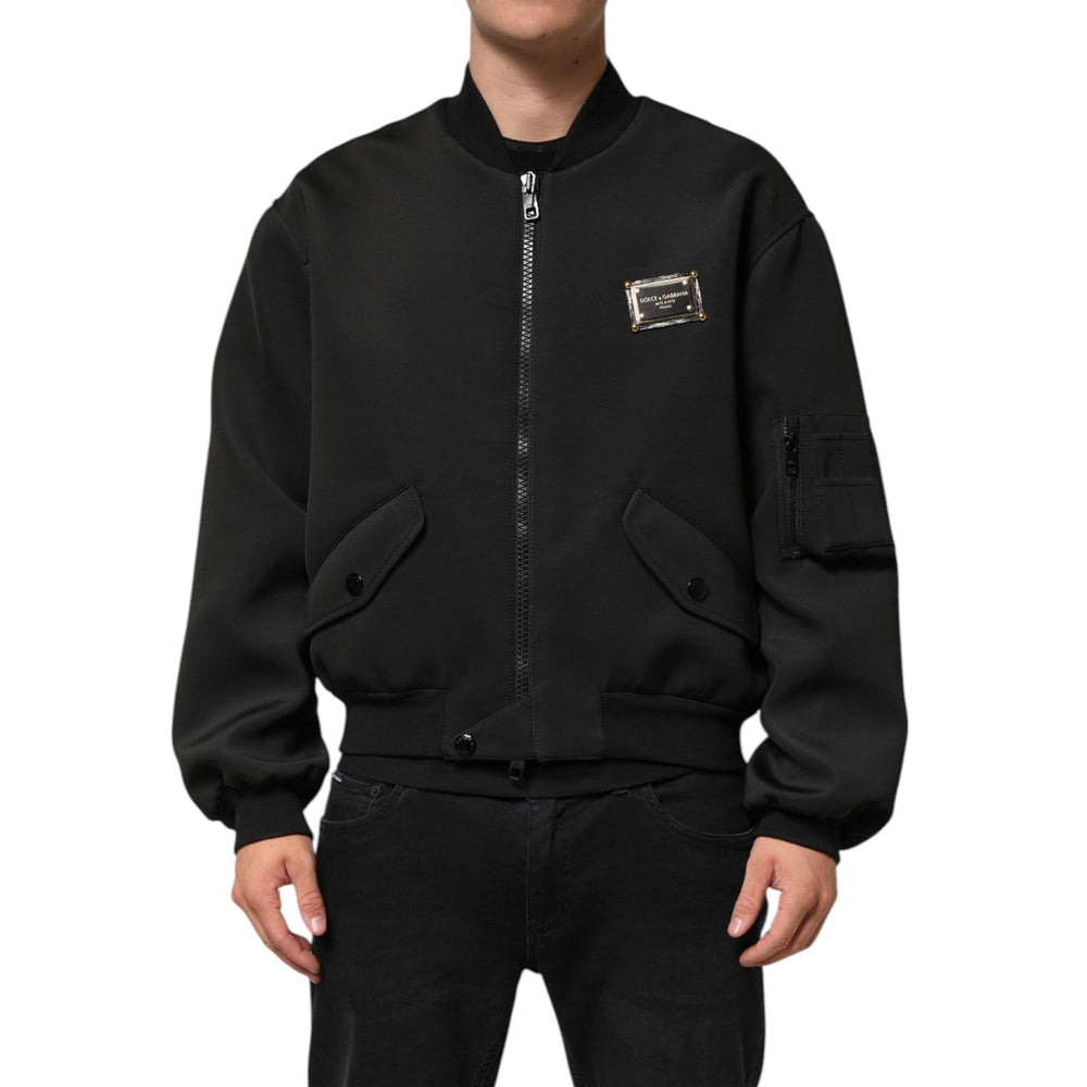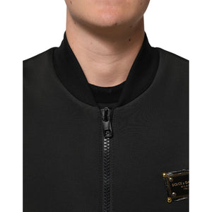 Dolce & Gabbana Black Polyester Logo Plaque Bomber Jacket