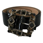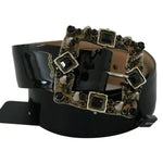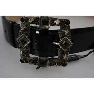 حزام دولتشي آند غابانا المصنوع من الجلد الأسود اللامع والمزين بشعار الكريستال