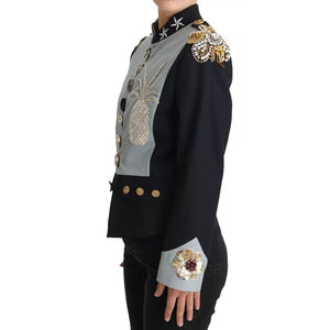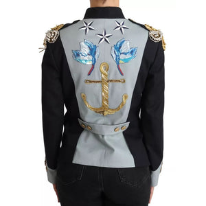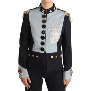 • Dolce & Gabbana Blue Button Crystal Embellished Cotton Jacket