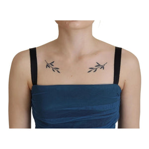 Dolce & Gabbana Blue Mesh Trim Ruched Tulle Sheath Dress