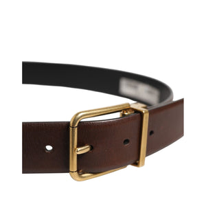 Dolce & Gabbana Brown Classic Gold Metal Logo Buckle Men Belt
