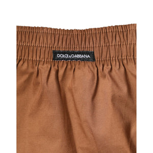 Dolce & Gabbana Brown Cotton Boxer Waistband Short Swimwear
