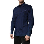 Dolce & Gabbana Dark Blue Cotton GOLD Dress Formal Shirt