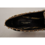 Dolce & Gabbana Gold Crystal Square Toe Brocade Pumps Shoes