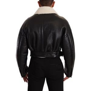 Dolce & Gabbana Black Leather Shearling Biker Coat Jacket
