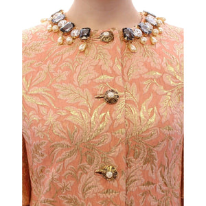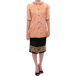 Dolce & Gabbana Pink Silk Brocade Crystal Jacket Coat