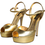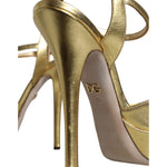 حذاء صندل جلدي بكعب ذهبي من دولتشي آند غابانا